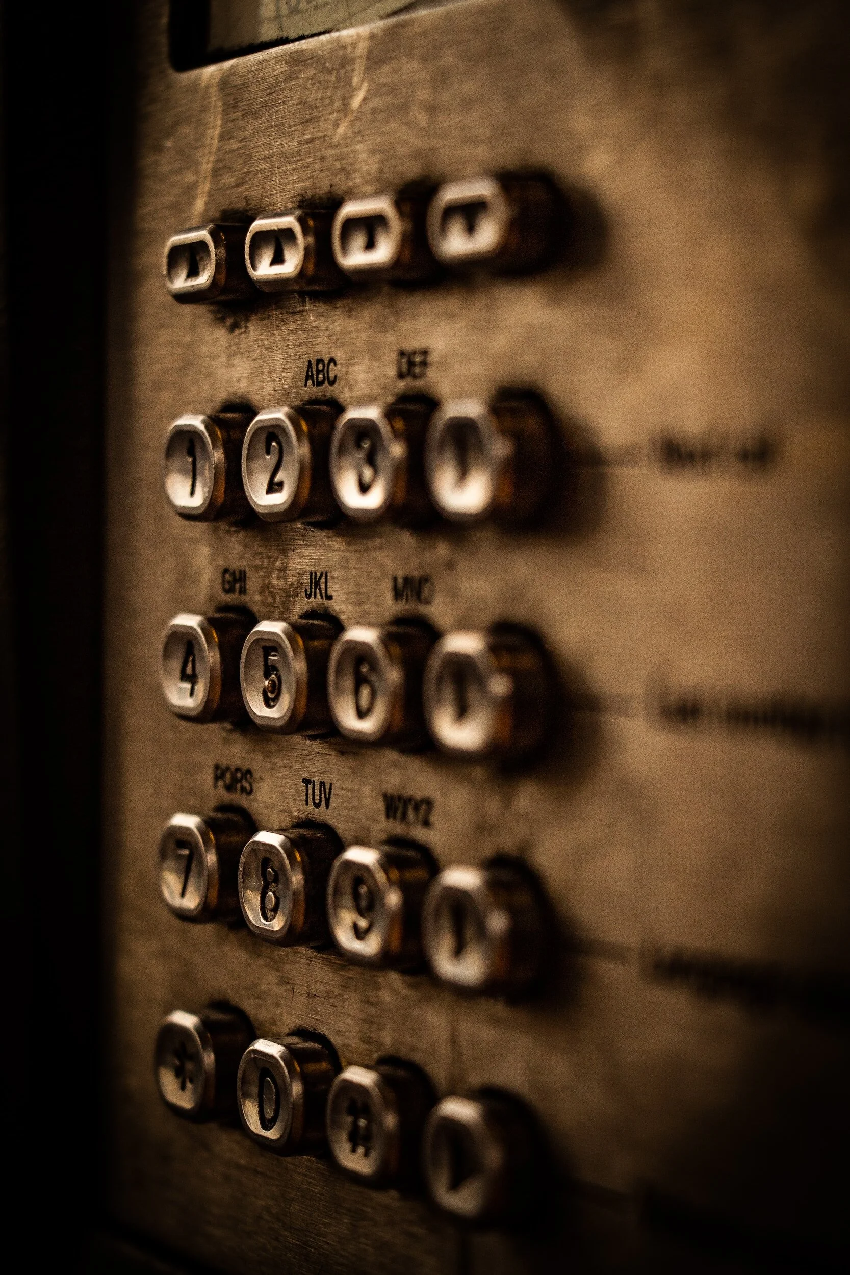 Close-up of a metallic elevator button panel with the number 12 lit up.